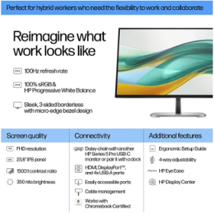 Get more out of your workday with the HP Series 5 Pro 23.8” FHD Monitor.Create the setup that works forthe