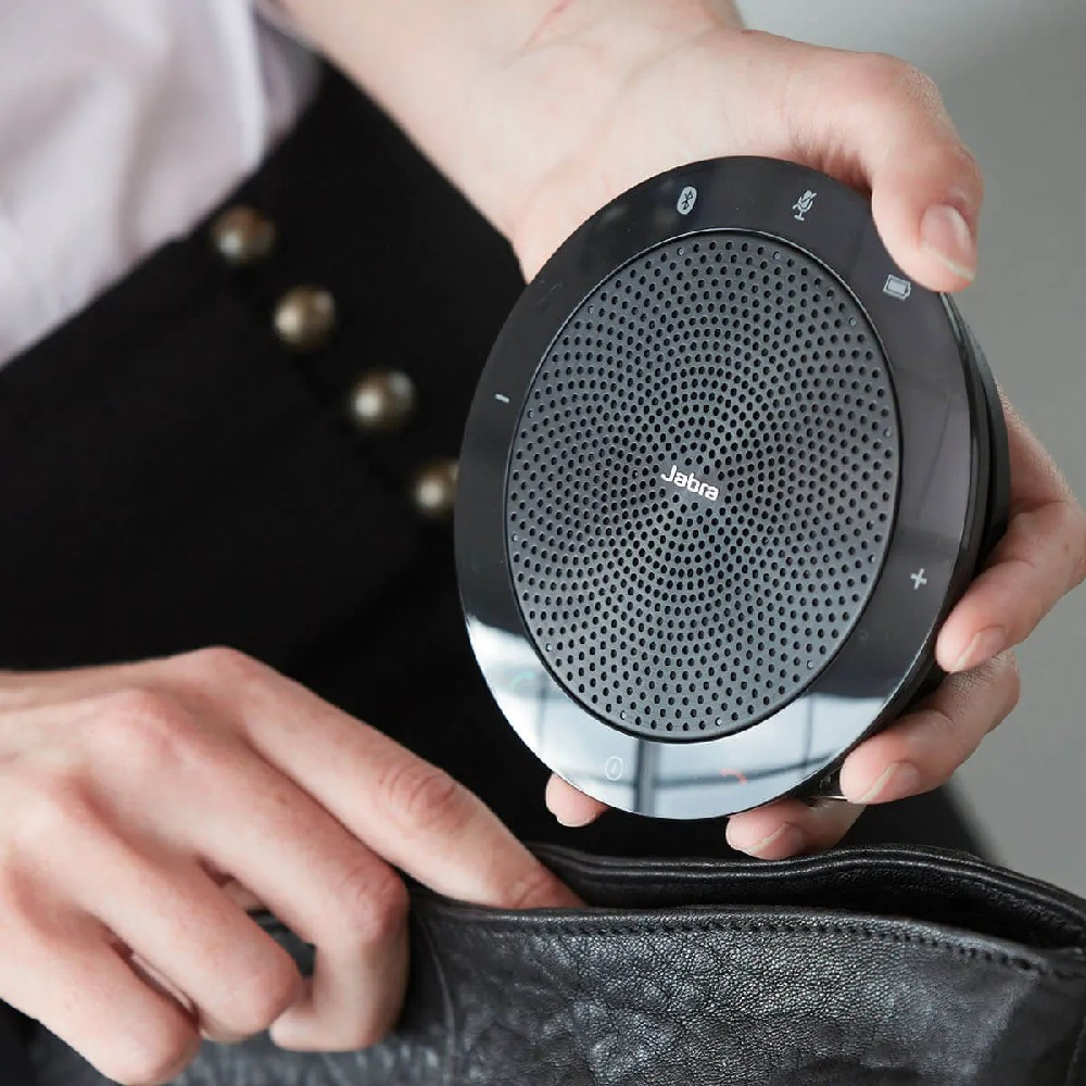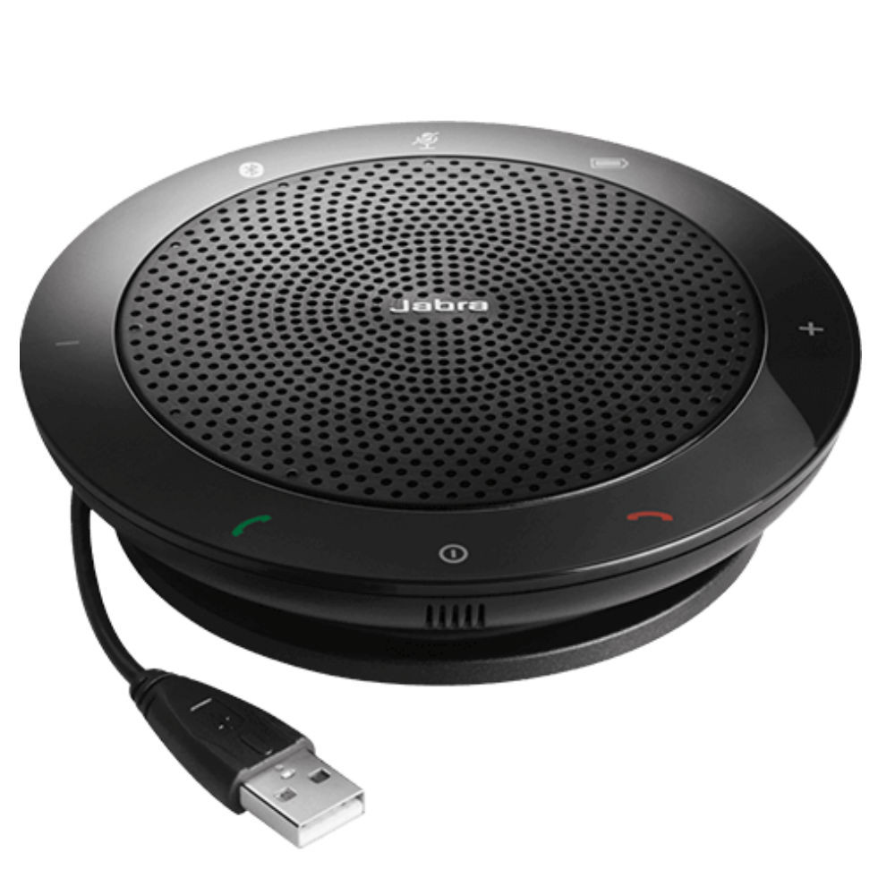 The Jabra Speak 510 connects to your computer’s USB 2.0 port using its built-in cable. You can also pair the speakerphone with Bluetooth-compatible devices such as phones.