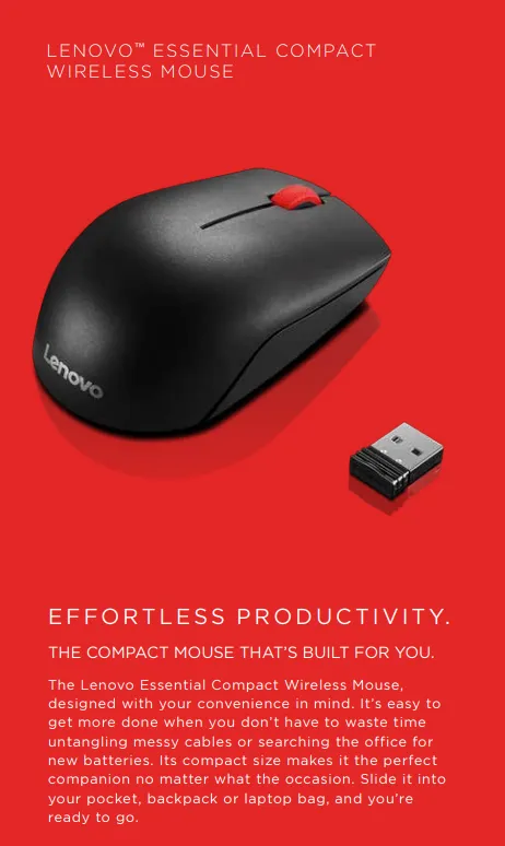 Lenovo Essential Compact Wireless Mouse 4Y50R20864 【Bytebox】