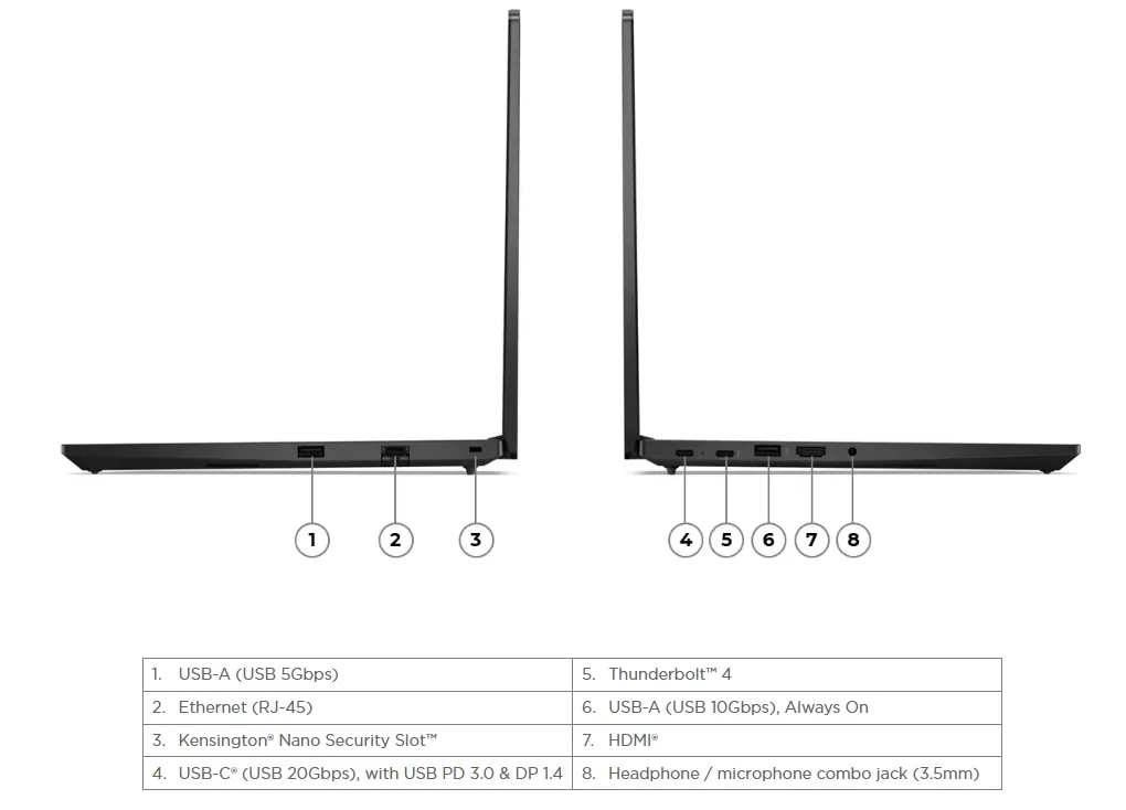 The ThinkPad E14 Gen 6 laptop is equipped with stunning display options, including a touchscreen and Eyesafe® certification for low blue light emissions. In addition, you’ll enjoy a sublime sound experience with the advanced Audio by Harman® and Dolby Atmos® whether you’re listening to your favorite media or dialing into crystal-clear audio during conference calls. Keep your meetings in focus and your collaboration to a maximum.